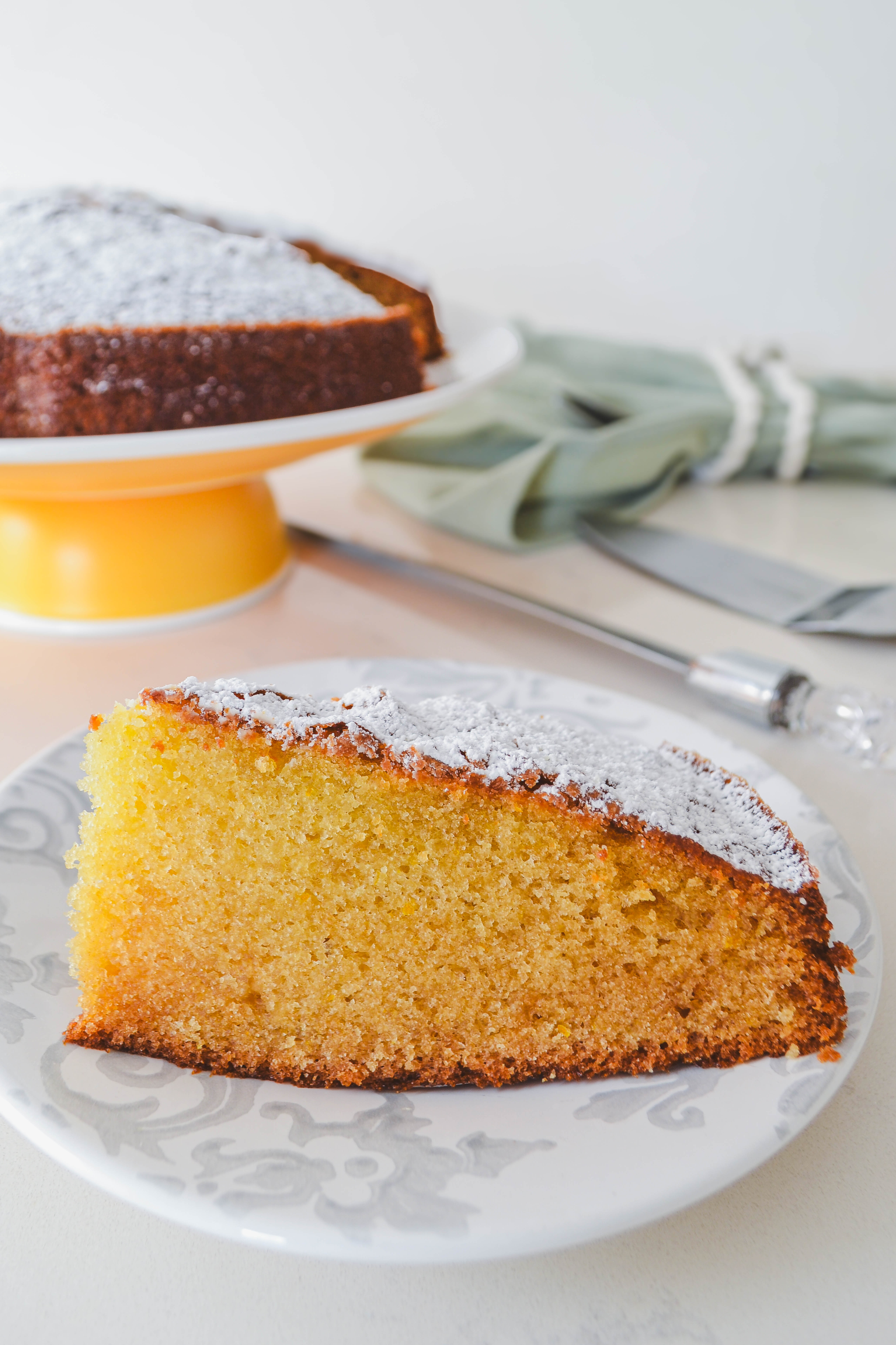 La receta está basada en el Easy Orange Olive Oil Cake de Averie Sunshine y destaca por su humedad y aroma.
