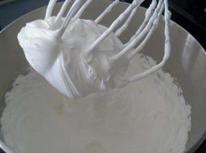 Pero bueno, vamos a lo que nos importa ahora, la forma de preparar este baño, primero, como la base de este baño (frosting) es un merengue suizo, deberán poner a hervir un poco de agua en una olla, mientras el agua hierve, en el tazón de batir (el mismo de la batidora) deberán poner las claras de huevo, el azúcar, el cremor tártaro y la sal, con la ayuda de un batidor de mano le dan una pequeña batida para que los ingredientes se integren y entonces ponen el tazón sobre la olla, ahora deberán tener paciencia y fuerza en el brazo porque deberán batir hasta que la mezcla llegue a 140°F/60°C, usen un termómetro de cocina para eso.