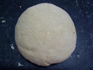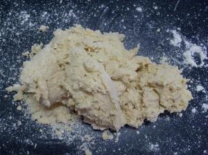 Con la ayuda de las manos unan bien la masa, pero sin amasar mucho. No se si en la foto se llega a ver, pero deben quedar algunos pedazos de mantequilla, eso hace que al hornear quede bien suave.
