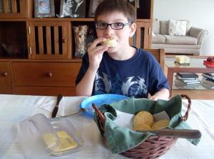 Pero ¿qué pasó con mi familia? ¿por qué no les gustó cuando se los hice? pues justamente porque eran dulces, por alguna razón no pudieron con eso, así que la siguiente vez se los hice salados y se los serví en el desayuno, fue un éxito, no saben cómo se los devoraron, se los comieron con mantequilla, con aceituna, con huevo, con jamón, en fin, me quedé con la boca abierta, desde entonces en mi casa lo scones son para el desayuno y siempre salados.