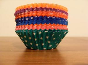 Primero, mis pirotines (cupcake liners), aquí se consiguen sin ningún problema los pirotines simples, los que son para horno y que están hechos con papel manteca. Pues bien, los que son de colores o con dibujos no los he podido conseguir, bueno, es verdad, en la librería Zeta de Miraflores, en el segundo piso, ahí se pueden encontrar algunos porque ellos venden los productos Wilton, que son muy buenos pero no traen mucha variedad.