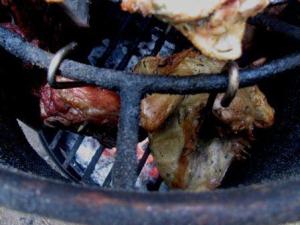 Las carnes se cuelgan con unos ganchos especiales, así se van cocinando poco a poco.