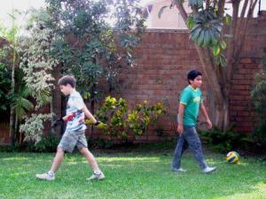 Para prevenir dificultades con los niños, ellos almorzaron primero, luego se dedicaron a jugar, las chicas dentro de la casa y los niños jugando fútbol, qué más.