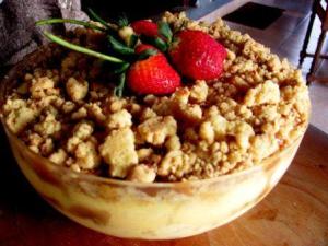 • Hola Rocío, no, no los hice yo, a mi me tocó llevar carne. El Cheescake de Dos Chocolates lo compraron en Wong y el Terremoto de Mango en Casa Gourmet. El cheesecake tenía la base de galletas Oreo, una capa de cheesecake de chocolate blanco y otra capa de cheesecake de chocolate bitter. El Terremoto era como un trifle, intercalando mousse de mango y streusel.