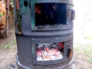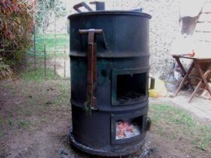 Se pone el carbón en la parte de abajo, tiene una pequeña puerta para que sea más fácil ir aumentando cuando hace falta, además que se puede controlar la entrada del aire.