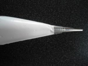 Para poder rellenar los cupcakes deberán poner una boquilla larga y redonda en una manga de repostería, yo usé la boquilla número 230 de Wilton.