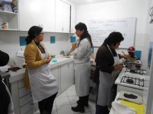 Los cursos son en su taller en La Molina y todos los que van tienen la oportunidad de hacer algo, entre pesar ingredientes, mezclar y decorar.