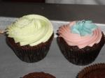 Aprendimos también cómo lograr esa mezcla de colores en los cupcakes bicolor, me hizo acordar a los helados de máquina.