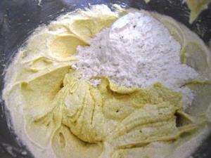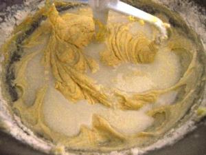Poner la batidora a velocidad baja y agregar un tercio de los ingredientes secos ya cernidos. Uno de los ingredientes para hacer estos muffins es «cake flour», no, no es harina preparada, es una harina especial para hacer tortas. ¿Se acuerdan de los cupcakes de Pisco Sour que hice hace un tiempo? Bueno, ahí también pedían «cake flour» y les expliqué cómo sustituirla, pero igual les refresco la memoria: por cada media taza de «cake flour», colocar una cucharada de fécula de maíz y completar la media taza con harina (la común, la que es sin preparar).