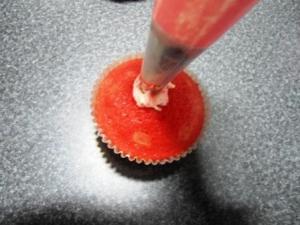 Poner la crema roja en una manga con boquilla de estrella, yo usé la 1M de Wilton.
