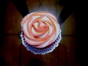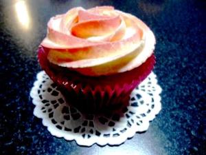 Pero bueno, con tanta explicación se nos pasa el tiempo y no les he podido enseñar a hacer las rosas en el cupcake. Como les conté, los cupcakes son los de vainilla, pero la mitad de la masa la pinté de rojo para darle un toque marmoleado. Quería darle un tono rojo y no quería hacer los red velvet porque no quería darle sabor a chocolate a los cupcakes.
