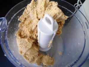 Con el procesador en funcionamiento, agregar el agua fría en forma de hilo y procesar hasta que vean que se forma la masa. La masa al principio abarcará todo el procesador, pero una vez terminado de agregar el agua y procesando por unos segundos más verán que se forma una bola, eso quiere decir que ya está.