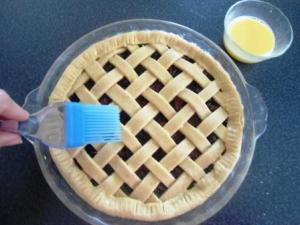 Con cuidado doblar la masa de los bordes de la tarta de modo que cubran las terminaciones del enrejado. Si desean presionen los bordes con un tenedor para darle un mejor acabado.