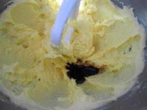 Con los dos ingredientes en la batidora, batir a velocidad media-alta hasta que la mezcla esté muy cremosa. Luego agregar los huevos uno por uno, cuidando de batir luego de cada adición. Me pasa siempre que la masa se corta cuando termino de poner los huevos, he tratado mil formas para que eso no suceda, pero pasa. Si a ustedes les pasa lo mismo no se pongan tristes, lo que deben hacer es poner un poco de harina, como dos cucharadas y seguir batiendo, eso ayuda a que se una la masa.