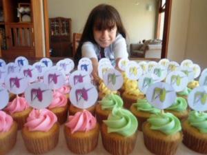 Y claro, para tremenda ocasión me pidió que le hiciera unos mini-cupcakes con los colores de su marca y además con el logo, el lindo unicornio que identifica a IMANI.