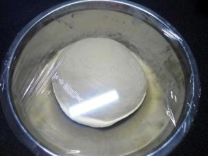 Formar un bollo, colocarlo dentro de un tazón, cubrir con film y dejar reposar por 20 minutos.