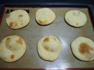 Los panes los irás poniendo en la lata caliente y verás que el contraste de temperatura hará que se inflen casi inmediatamente.