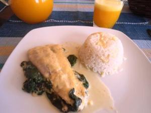 Pueden acompañarlo también con una ensalada, pero la verdad es que como ya tiene espinaca no hace falta. En todo caso, con lechuga y tomate más que suficiente.