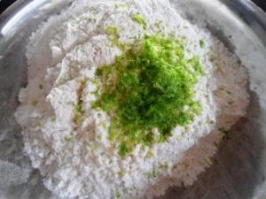 En otro tazón cernir el harina con el polvo de hornear, bicarbonato y sal, luego agregar la ralladura del limón y mezclar bien. Si es que le van a poner las semillas al muffin, entonces las ponen aquí en la mezcla de harina.