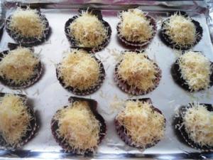 Hay que poner un poco de pimienta en las conchas, si es recién molida mejor. Luego colocar el queso rallado sobre ellas, pero abundante, si les parece que tiene mucho, entonces le ponen un poco más. Ese poco más nos faltó a nosotros, por eso al final parecía que tenía poco y es que de alguna forma el queso desaparece. Esta vez pusimos queso recién rallado, es decir, rallado por nosotros. En verdad desde hace mucho tiempo ya no compro el de las bolsitas, compro el queso parmesano en molde y lo vamos rallando, es otra cosa.