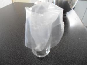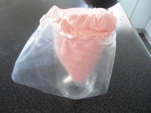 Ahora sólo levanten la parte de la manga que quedó fuera del vaso, la retiran, enroscan por arriba tratando de eliminar el aire y ya está, todo listo para que empiecen a hacer sus decoraciones.