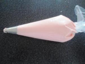 Y con esto tienen lista su crema, ahora la ponen en una manga con la boquilla que más les guste y se ponen a decorar. Para que les resulte más fácil colocar la crema en la manga, pueden ayudarse con un vaso, en este caso, colocarán la manga (ya con la boquilla) dentro del vaso. Lo que sobra de manga la doblan para afuera, como si estuvieran forrando el vaso.