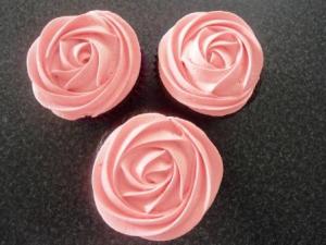 Pretty piping rose affect. They would look lovely made into a cupcake bouquet