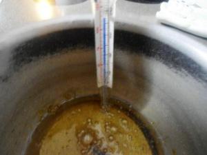 Mientras se enfrían los cupcakes preparar el Merengue Italiano, es el mismo procedimiento que usé para hacer los Cupcakes de Pisco Sour, sólo que en lugar de Pisco se usa ron y en lugar de limón, naranja. Entonces, en una olla colocar el azúcar, agua, ron y ralladura de naranja, sin mover colocar la olla en fuego y dejarla ahí hasta que se forme el almíbar, es decir, que la mezcla llegue a una temperatura de 235°F/113°C.