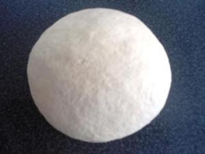 Colocar la masa en el centro de la placa donde se horneará la pizza, cubrir con film y dejar que dupliquen el volumen, esto es aproximadamente una hora y media. La placa debe estar engrasada o con silpat. Lo ideal es usar una placa especial para pizza, de unos 30 ó 32 centímetros de diámetro, pero como yo no tengo uso la de galletas y hago la pizza cuadrada.
