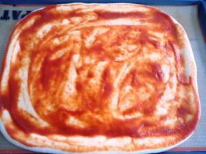 Cubrir la masa con salsa de tomate.