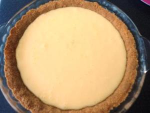 Forrar con esta mezcla la base y los bordes de un molde de pie de 9 pulgadas de diámetro. Yo uso siempre el molde refractario, me parece bastante cómodo porque en verdad no se necesita desmoldar y les confieso algo, sufro mucho cuando tengo que desmoldar el pie de limón. Otra cosa, para guardar el pie en la refrigeradora me parece más sencillo que no esté desmoldado, cuando queda dentro del molde sólo se le tapa con film y listo.