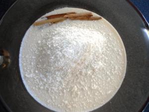 Llevar a hervir la leche, esto es para que el coco y la cenela impregnen sus sabores en la leche. Deberá hervir como 15 minutos, luego de ese tiempo apagan el fuego y dejan unos 10 minutos más en la olla para que la leche entibie y continúe la transferencia de sabores. Asegúrense de usar una olla grande, ya que cuando la leche hierve la espuma invade la olla y ésta se puede derramar. Recomendación, no tapen la olla y estén con el ojo atento, moviendo de vez en cuando para que no se pegue al fondo de la olla. Si ven que la leche sube mucho retiran la olla del fuego hasta que baje y luego la regresan.