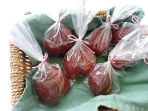 Como estas Magdalenas de Lúcuma las llevamos al almuerzo familiar por el Día de la Madre, entonces las pusimos en unas bolsitas, las cerramos con un cordón rosado y las pusimos en una canasta. Sí, en plural, este último paso lo hice con Adriana para que relage a todas las mamás de la familia.