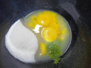 Veamos cómo se hace este curd. Como la cocción se hace a baño maría, primero deberán poner a calentar agua en una olla. Dentro de esta olla deberán colocar el tazón donde harán el curd, así que busquen una olla y un tazón que calcen bien. En el tazón y fuera del agua caliente, colocar las yemas, azúcar, jugo de limón y ralladura de limón (sin la parte blanca).