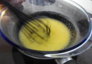 Con un batidor de mano mezclar muy bien todos los ingredientes para luego colocar el tazón en el agua caliente. Dos recomendaciones: es mejor si el tazón no toca el agua y hay que tener cuidado que el agua se mantenga bien caliente, pero que no hierva.