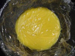 Cubrir el tazón con film de modo que este quede pegado a la crema, de ese modo evitamos que se forme una nata sobre la crema, lo cual perjudicaría su textura. Ahora refrigerar de un día para otro o por un máximo de 2 semanas.