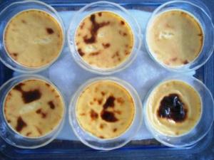 Pero, ¿se acuerdan que les dije que la Leche Asada es un familiar cercano del Creme Brulée? Bien, eso quiere decir que la parte de arriba de la Leche Asada debe estar quemada. Para lograr eso tenemos dos opciones: usar un soplete o usar el modo broil del horno. Yo usé la segunda opción porque no tengo soplete. Así que luego de los primeros 45 minutos cambié el horneado a broil y las dejé ahí un buen rato. La verdad es que pensé que se quemarían rápido, pero no, tomó tiempo y al principio se comenzaron a inflar como globos, pero luego bajaron y empezaron a tomar color. Así que estén atentos al horno.