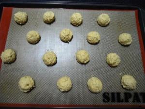 Con ayuda de una cuchara hacer bolitas con la masa y colocarlas en una placa para horno. Recuerden de ponerlas bien separadas para que no se vayan a pegar unas con otras. Si se desea, pasar las bolitas por azúcar granulada.