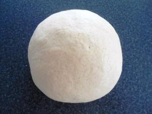 Colocar la masa sobre la mesa, amasar por un minuto con las manos y formar un bollo. La masa no se debe pegar ni a la mesa ni a las manos, pero sí deben sentir que está algo húmeda.