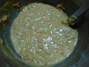 Agregar la zanahoria rallada y mezclar con la ayuda de una espátula. Si quieren usar nueces, agregarlas en este momento, junto con las zanahorias. Ojo que si le ponen nueces, entonces saldrán más muffins, tomen nota que sólo con las zanahorias me salieron 27.