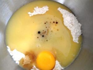 Mover con una cuchara de madera para integrar bien todos estos ingredientes, al igual que con la harina. Agregar la sal y seguir mezclando.