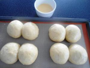 Pincelar la superficie de cada bollo con huevo batido con agua.