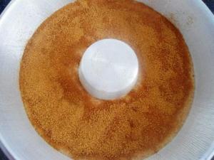 Vaciar en un molde con hueco debidamente engrasado. El molde que usé es de 23 centímetros de diámetro, el mismo que usé para hacer la Crema Volteada de Quinua.