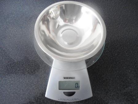 Ahora bien, hay recetas que te piden medidas por peso, la verdad es que me parece lo ideal, porque resulta mucho más exacto. Para eso sí se hace imprescindible contar con una balanza. Me acuerdo que al principio tenía una balanza común donde había una aguja que se movía por los números indicando el peso, pero no me permitía medir bien los gramos, así que mi esposo me regaló una balanza digital. Mi balanza me permite marcar en 0.00 luego de colocar el recipiente donde colocaré el ingrediente, así sólo peso el contenido, que es lo que importa.