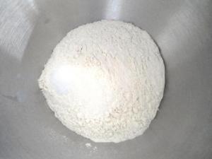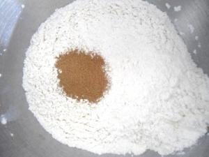 Agregar la levadura a la harina. Usé la levadura instantánea, por lo tanto la puse directamente en la harina, sin embargo, si ustedes usan la levadura seca que no es instantánea, primero deberán hidratarla en el agua tibia y recién entonces colocarla en la mezcla en el paso que sigue.