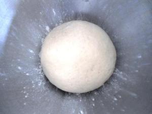 Colocar la masa sobre la mesa y amasar por un minuto y formar un bollo. Verán que la masa es algo «dura», no es como otras masas que hemos hecho anteriormente, pero supongo que así debe ser, por lo menos con esta receta.