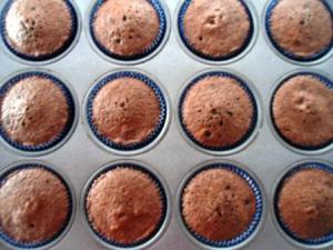 Después de hacer los Cupcakes de Nutella, me quedé con las ganas de volver a hacer la receta de chocolate, pero cambiando los leudantes para que la masa no se salga del molde, mi idea era retirar el polvo de hornear y dejar únicamente el bicarbonato, o al revés, pero como sólo se puede tratar de una en una, esta vez decidí por la primera opción.