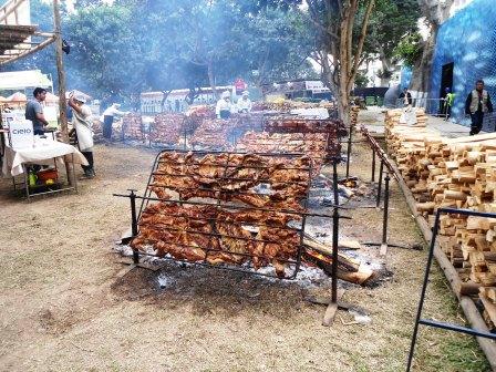 El año pasado nos habíamos quedado con las ganas del chancho al palo, así que esta vez lo teníamos como nuestra primera parada. Llegamos a las 10 de la mañana y nos dirigimos raudamente al puesto de Carlos Ramírez, el chancho todavía no estaba listo, había que esperar 15 minutos, lo pensamos y consideramos que era un tiempo prudencial de espera.