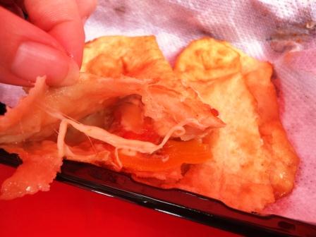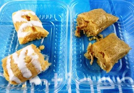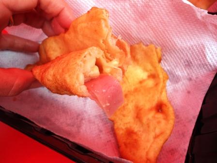 Salimos de ahí en búsqueda de algo que comer, ¿más? Sí, más, todavía no habíamos probado todo lo que teníamos en nuestra lista. Lo siguiente eran las Cachangas de Hectitor’s del Norte. Mi abuelita paterna, que era del norte, le había enseñado a hacer cachanga a mi mamá, las típicas cachangas fritas que las comíamos con miel. Estas eran diferentes, eran una cachangas rellenas. Pedimos las rellenas con queso y jamón y la otra rellena de lomo saltado. Está bien, un poco subido de grasa, pero qué rico…!!!