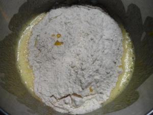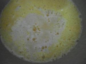Agregar el agua y batir hasta que quede bien incorporada. En la foto parece leche, pero de verdad es agua, tal cual dice la receta original.